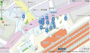 バス乗り場は静岡駅の16番、大浜麻機線か中原池ヶ谷線に乗っていただきます。